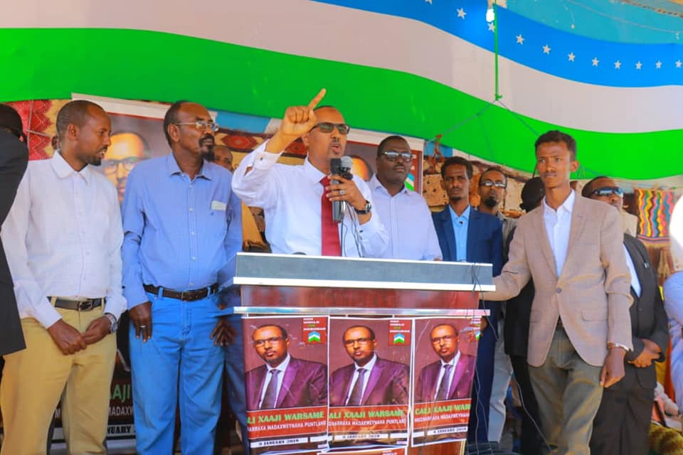 “Waxaan shacabka reer Qardho iyo guud ahaan reer Puntland u sheegayaa, shalayto waan tartamay. Markii tartankii dhamaaday, ragbaa isla maalintii doorashadu dhamaatay diyaarad raacay. Dadkii sidaas ahaa maanta ayay soo noqonayaan iyagoo murashixiin ah, war maka yeelaynaa? Waxaan rabnaa in dalka la joogo, Aniga waa la iga adkaaday, waan u hambalyeeyay waan kula shaqeeyay dalkana waan joogay. Reer Puntland waxan u balanqaadayaa in alle intaan dedaali karo inaan dedaalo, inaan ummadda iskusoo dhoweeyo, cadaalad ku dedaalo, dhaqankooda ilaaliyo iyo inaan ciidankooda mujaahidiinta ah xaqooda siiyo.” ayuu yidhi musharax Cali Xaaji Warsame.