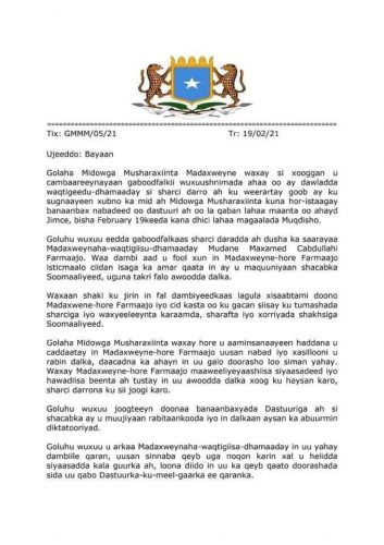 Sidoo kale Golaha Midowga Musharixiinta ayaa balanqaaday in ay sii wadayaan Banaanbaxayada inta xafiiska laga saraayo Farmaajo.