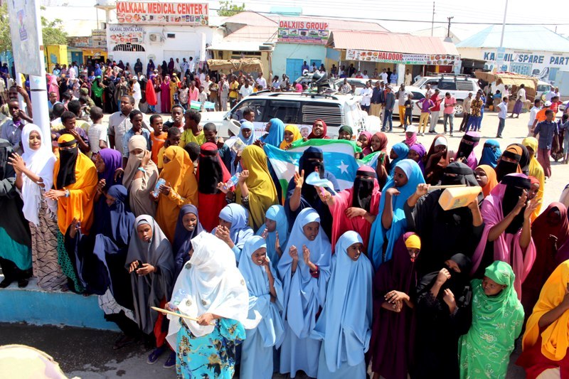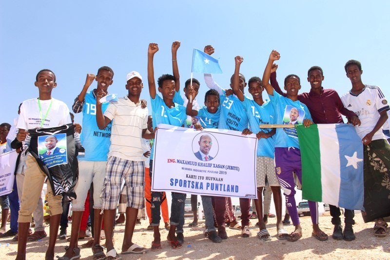 Boqollaal dadwayne ah oo ruxayey caleemo qoyan iyo calannada Puntland iyo Soomaaliya, kuna dhawaaqayey hal-ku-dhigyo ka turjumaya sida ay u taageersan yihiin Ololaha Karti iyo Hufnaan, ayaa musharraxa kusoo dhoweeyey garoonka diyaaradaha ee Garoowe.