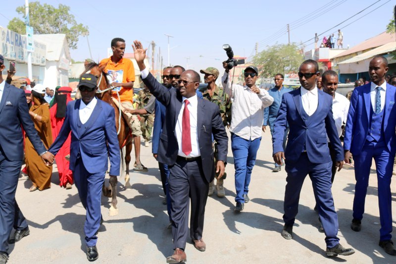 Intaas kaddib, waxaa musharraxa loo soo galbiyey dhanka Fagaaraha Barxadda, halkaasoo uu kula hadlay boqollaal kamid ah dadwaynaha ku dhaqan Garoowe. Musharraxa ayaa ka mahadceliyey sida diirran ee loo soo dhoweeyey, isagoo xusay in marnaba aanu hilmaami doonin taageerada ay reer Garoowe u muujiyeen.