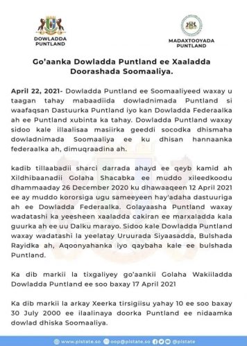 Hoos ka akhriso Qoraalka Puntland oo saaka oo khamiista soo baxay