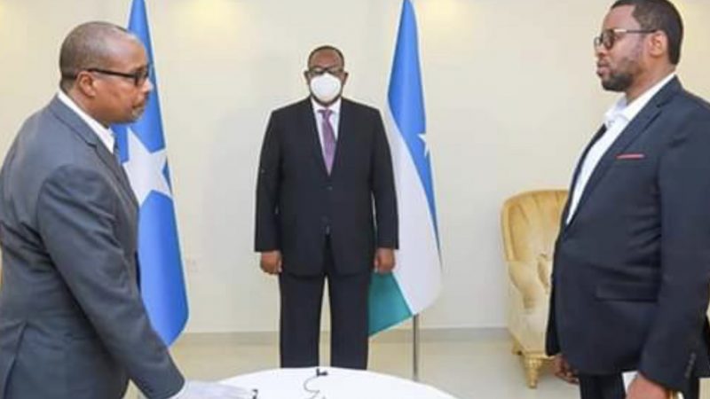 Hoos ka Daawo Sawirada, Xubnaha la dhaariyey Waxaa kamida Wasiirka cusub ee Warfaafinta Cabdullaahi Timacade iyo Wasiirka Kaluumaysiga Maxamuud Xaaji Salax