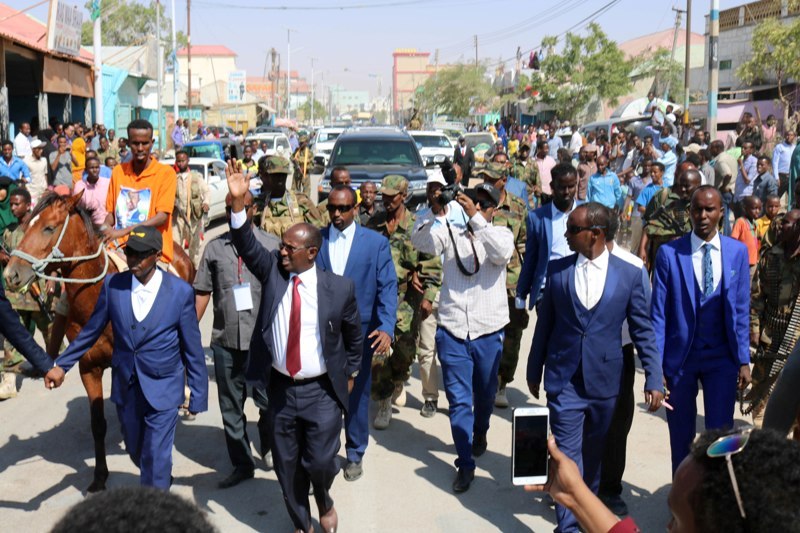 NOVEMBER 1, 2018 (GAROOWE): Magaalo madaxda Puntland ee Garoowe, waxaa maanta soo gaaray si diirranna loogu soo dhoweeyey Injineer Maxamuud Khaliif Xasan Jebiye oo ah musharrax u taagan xilka madaxwaynaha Puntland sannadka 2019.