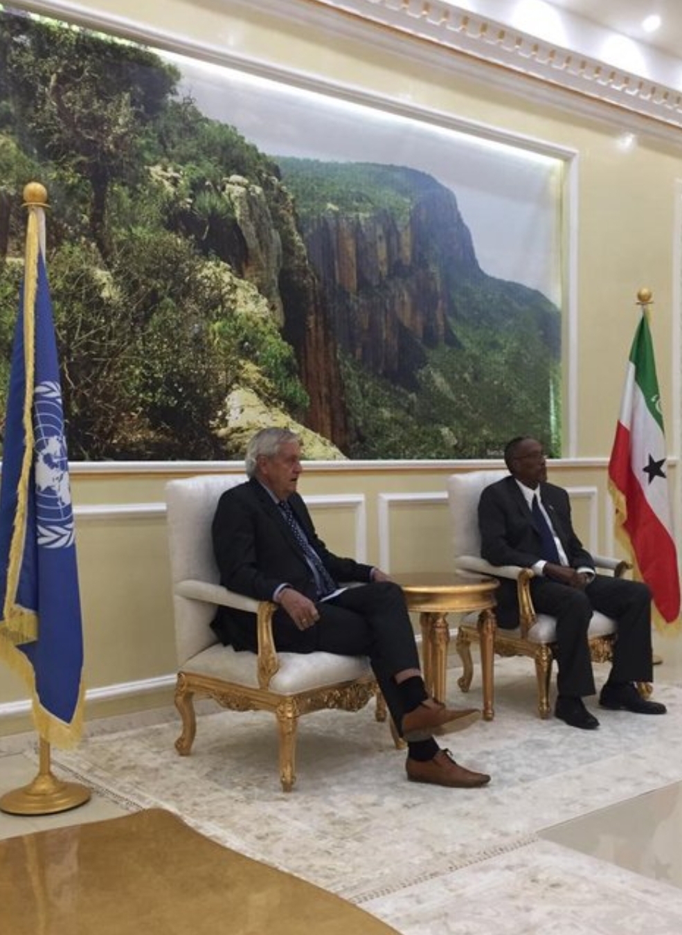 Ergeyga Xoghayaha Guud ee Qaramada Midoobey uu u soo dirsadey Arimaha Soomaaliya Mudane Nicholas Haysom ayaa maanta wuxuu Hareysa kula kulmey Madaxweynaha Maamulka Soomaaliland Mudane Muuse Biixi.