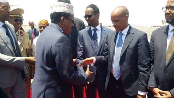 Madaxweyne Farmaajo iyo wafdigiisa waxaa garoonka Bolla Internaional Airport si diiran ugu soo dhaweeyey Madaxweynaha cusub ee Maamul Goboleedka Somaaliyeed ee Ethiopia Mudane Mustafe Maxamuud Cumar ( Mustafe Cagjar)